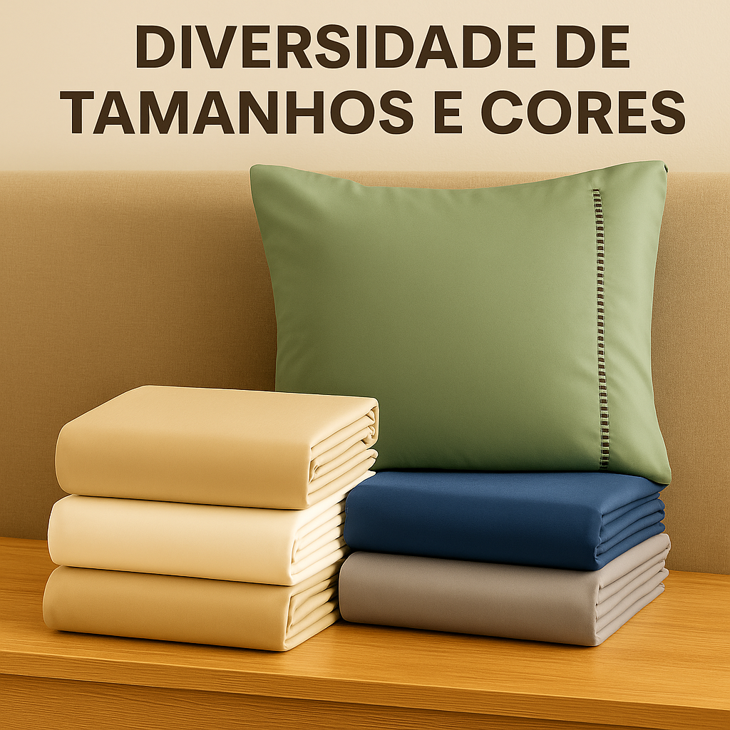 Solteiro, Casal, Queen, King e Berço — cada kit com a quantidade correta de fronhas e medidas perfeitas.